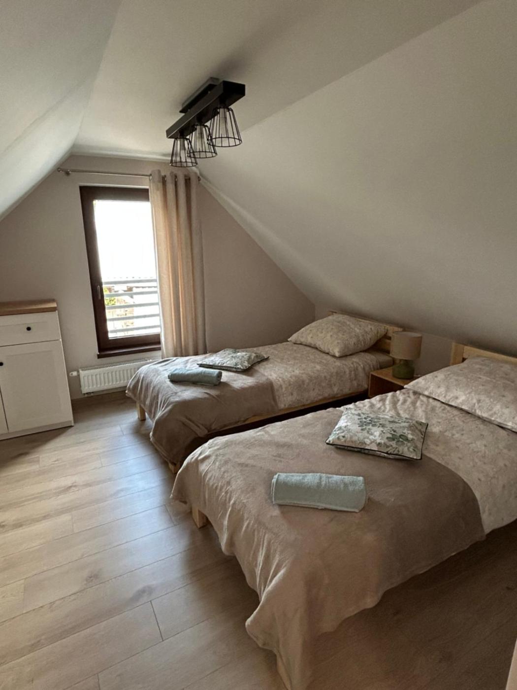 Dom z 3 sypialniami. The holiday homes kitchenette, which has kitchenware, is available for cooking and storing food. The holiday home features air conditioning, a washing machine, a terrace with garden views as well as a shared bathroom boasting a shower. The unit has 6 beds. Dom wakacyjny - 8 osobowy. Powierzchnia pokoju ok.: 70 mkw.