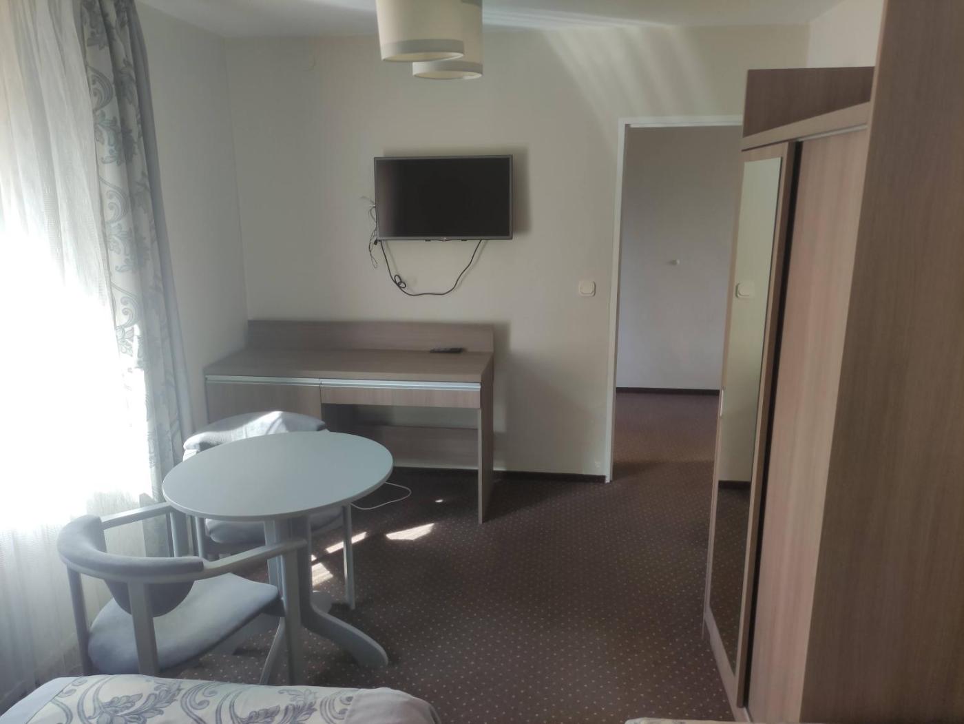 Pokój trzyosobowy. Ten klasycznie urządzony pokój wyposażony jest w telewizor i mieści łazienkę z bezpłatnym zestawem kosmetyków. Pokój Trzyosobowy - 3 osobowy. Powierzchnia pokoju ok.: 24 mkw. ;