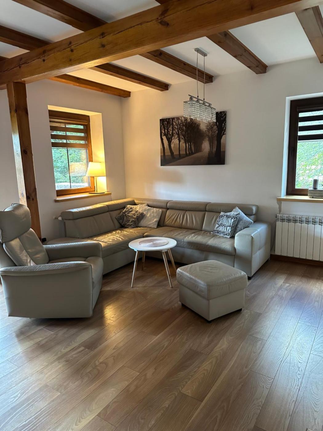 Dom z 4 sypialniami. The fireplace is a top feature of this holiday home. This spacious holiday home comes with 1 living room, 4 separate bedrooms and 2 bathrooms with a bath and a bidet. Guests will find a stovetop, a refrigerator, a dishwasher and kitchenware in the fully equipped kitchenette. The holiday home also includes a barbecue. Boasting a terrace with garden views, this holiday home also features an electric kettle and a flat-screen TV. The unit has 5 beds. Dom wakacyjny - 9 osobowy. Powierzchnia pokoju ok.: 120 mkw.