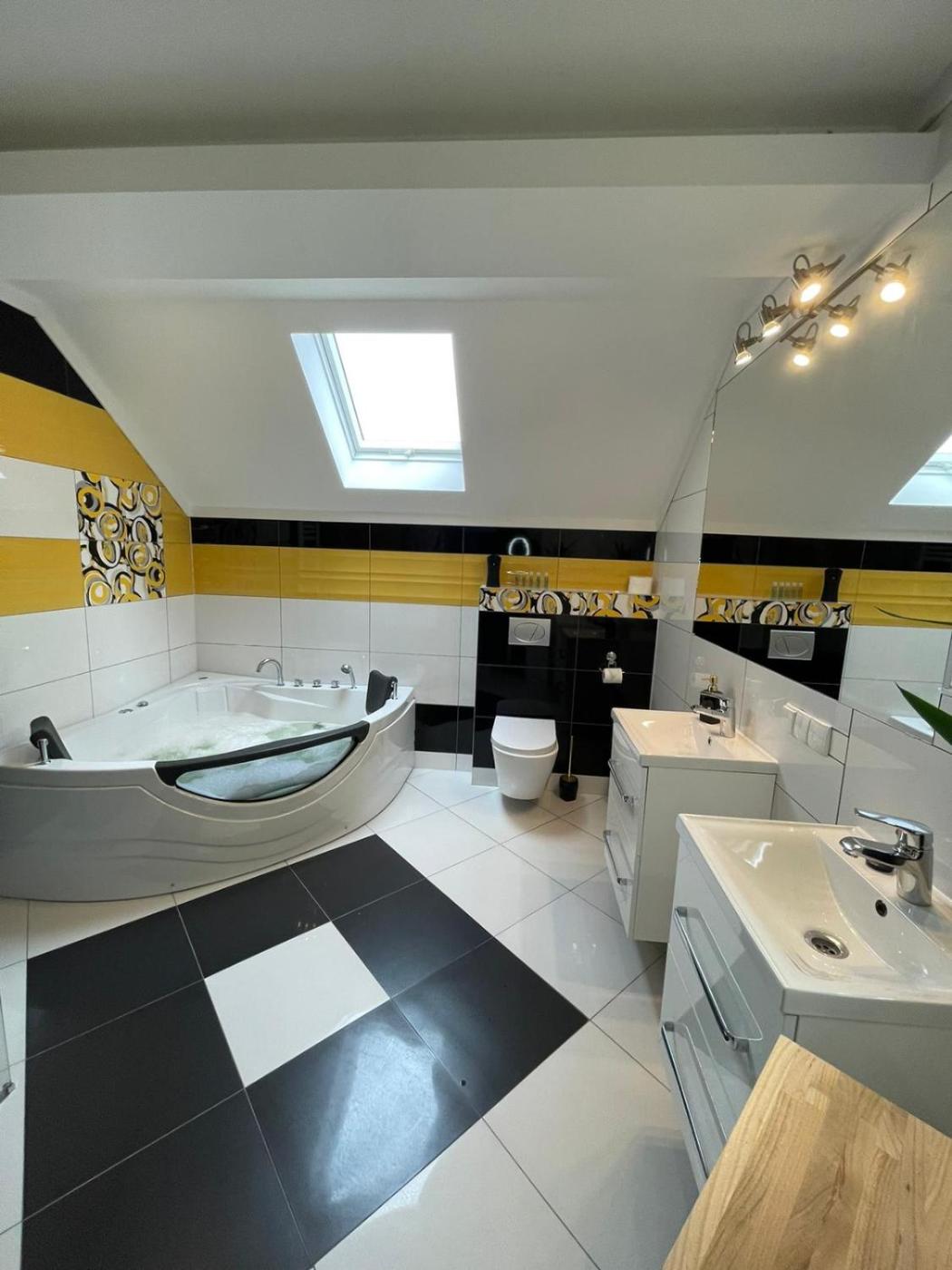 Apartament z tarasem. This apartment features a hot tub. Boasting a private entrance, this apartment also features 1 bedroom, a seating area and 1 bathroom with a walk-in shower and a bath. Guests will find a stovetop, a refrigerator, kitchenware and a microwave in the fully equipped kitchenette. The apartment also comes with a barbecue. Featuring a terrace with garden views, this apartment also features soundproof walls and a flat-screen TV. The unit has 1 bed. Apartament - 2 osobowy. Powierzchnia pokoju ok.: 30 mkw. ;